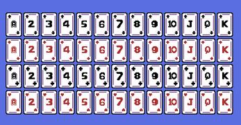 13 cards of each color variation Clubs, Diamonds, Spades and Hearts ( 52 )