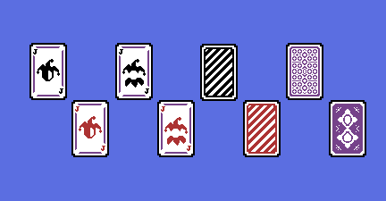 A clean, compact pixel art playing card pack featuring a full 52-card deck. jokers, card backs and extra UI elements. Perfect for retro-style card games, poker projects, or pixel-based game interfaces.